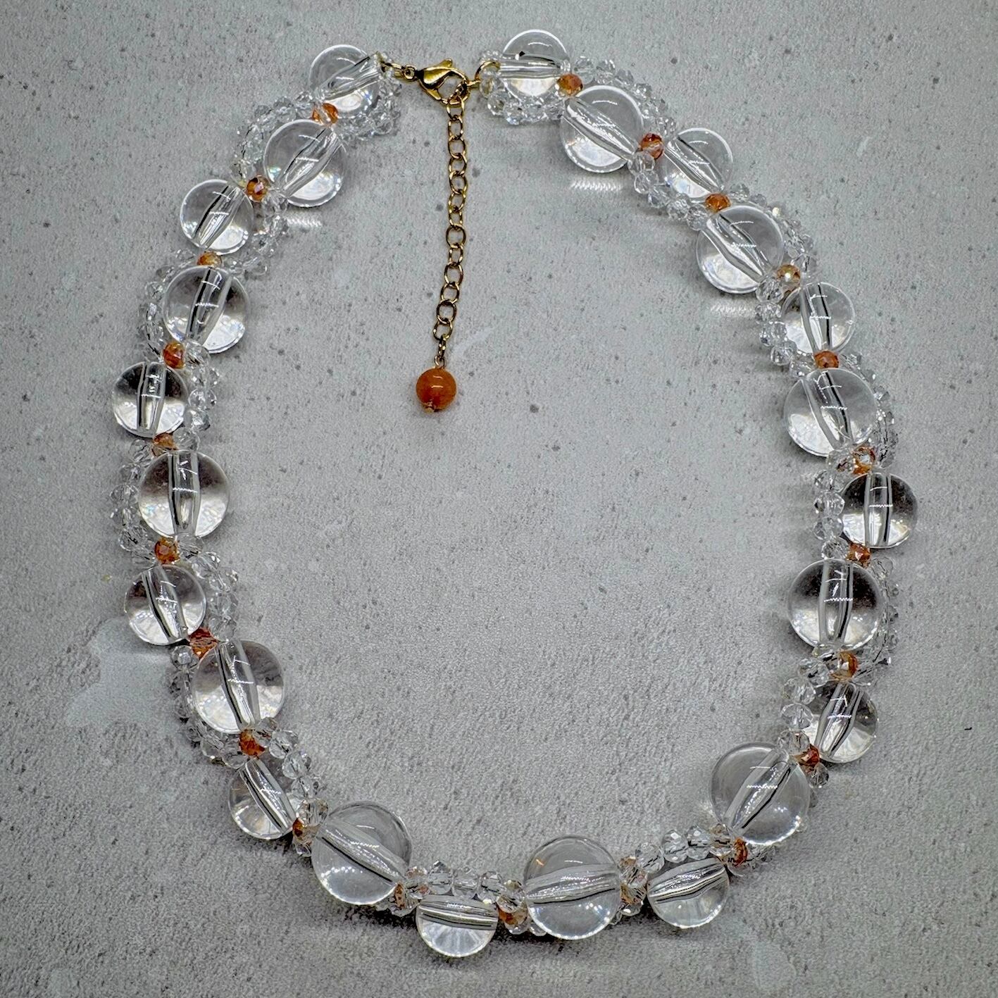 サージカルステンレス(SUS316L)とテグスを使っており、水濡れに強くアレルギーの方でも安心してお使いいただける作品となっています。