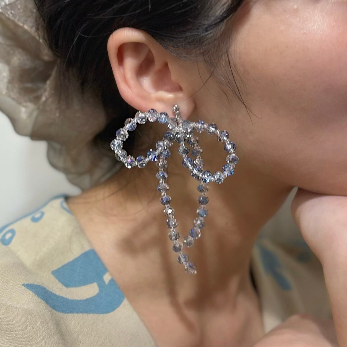 片耳はパールなどの組み合わせでアシンメトリーにお使いいただくのも素敵です。