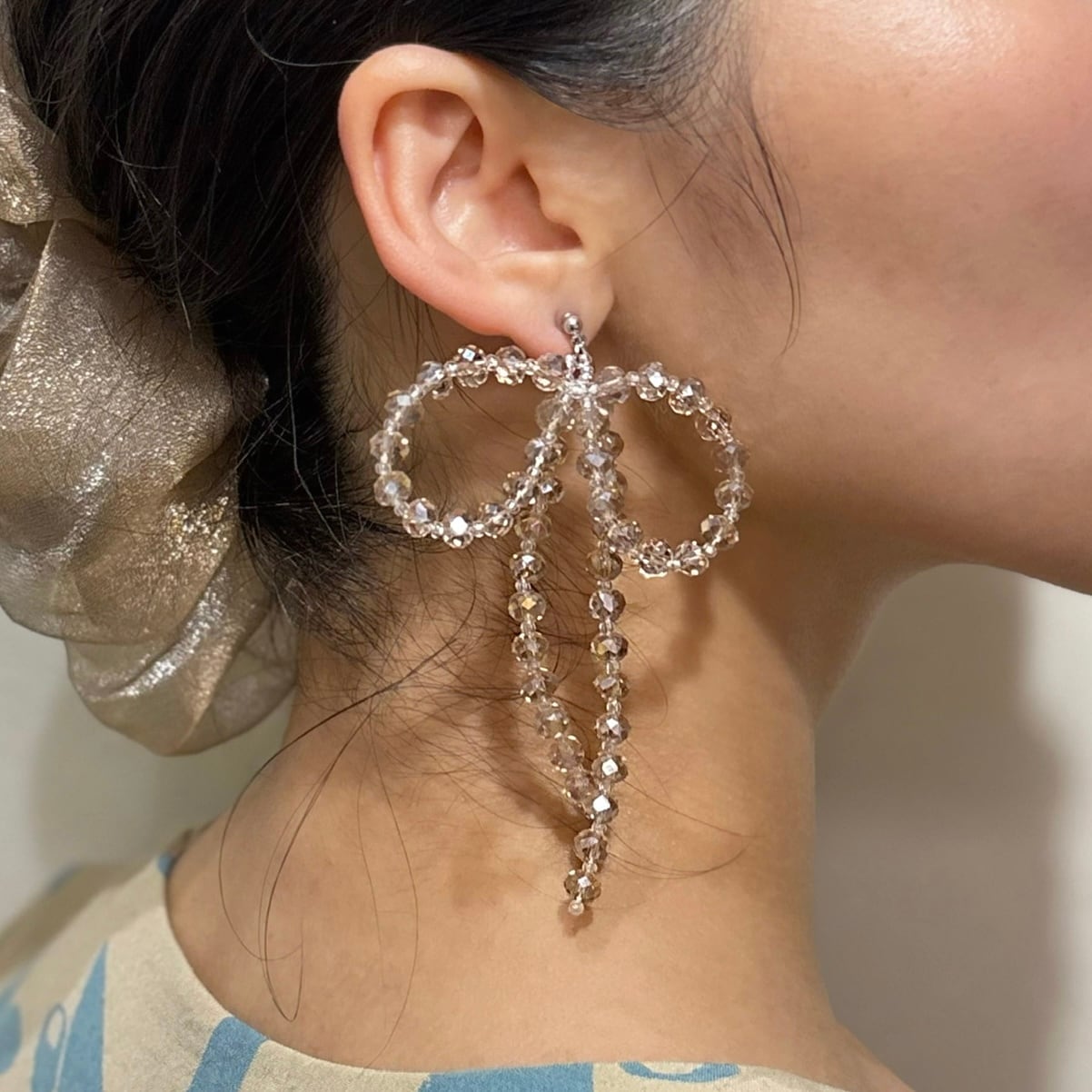 片耳はパールなどの組み合わせでアシンメトリーにお使いいただくのも素敵です。