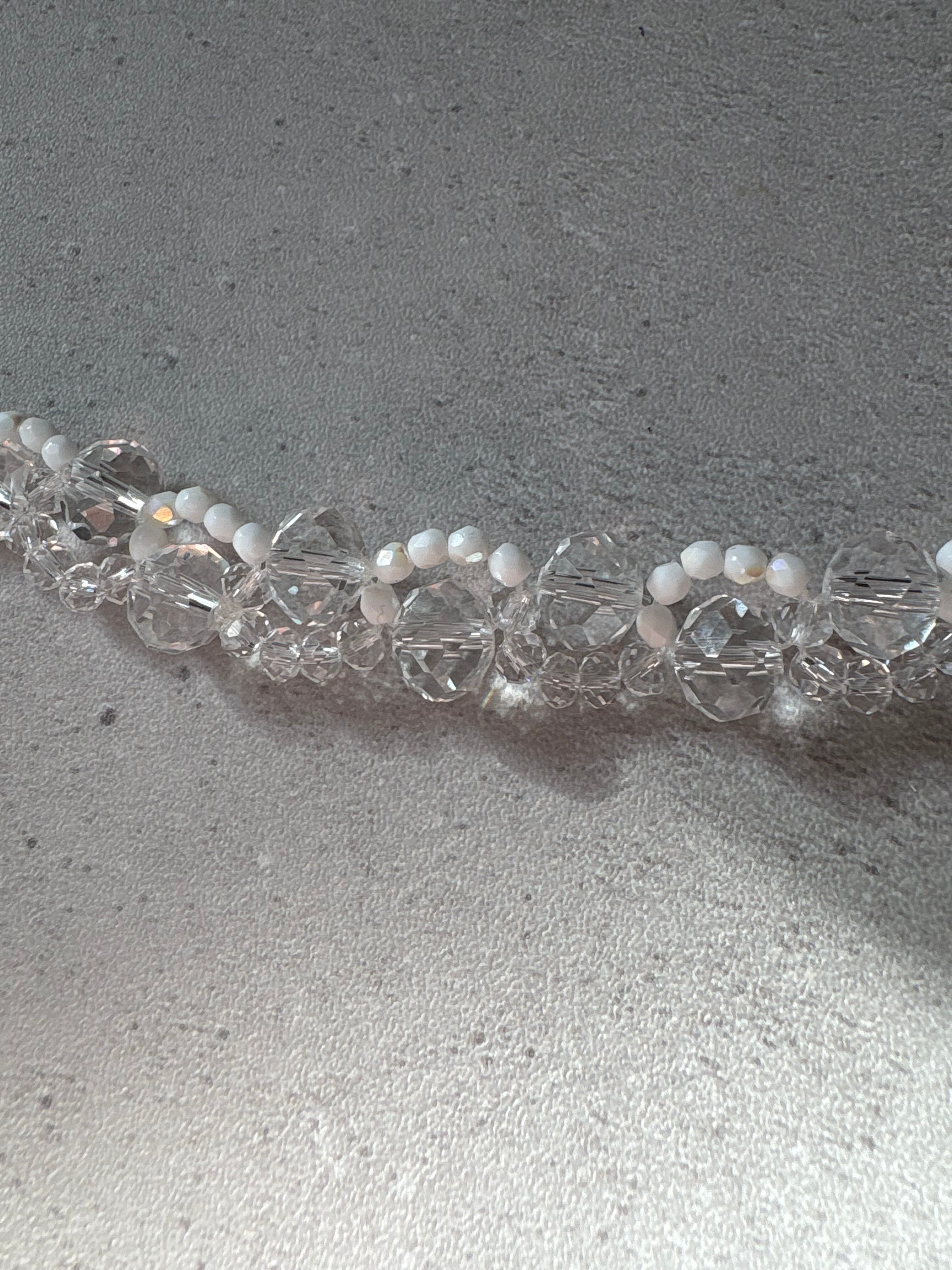 偏光のカットガラスビーズをミックスし、よりキラキラ感やモード感をプラスしました。